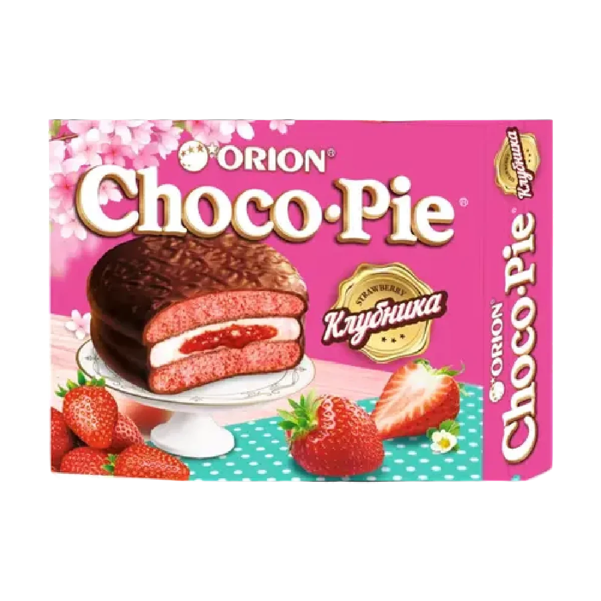 - Orion Choco.Pie Strawberry عبارة عن 12 علبة من فطائر الوجبات الخفيفة المبهجة بوزن 30 جرام. - تتميز كل فطيرة بحشوة الفراولة المخملية الغنية للحصول على نكهة حلوة بطعم الفواكه. - الفطائر مغلفة بطبقة ناعمة من الشوكولاتة، مما يضيف طبقة إضافية من الطعم اللذيذ. - هذه الحلوى المعبأة بشكل مريح مثالية للوجبات الخفيفة أثناء التنقل أو صناديق الغداء أو الحلوى السريعة.