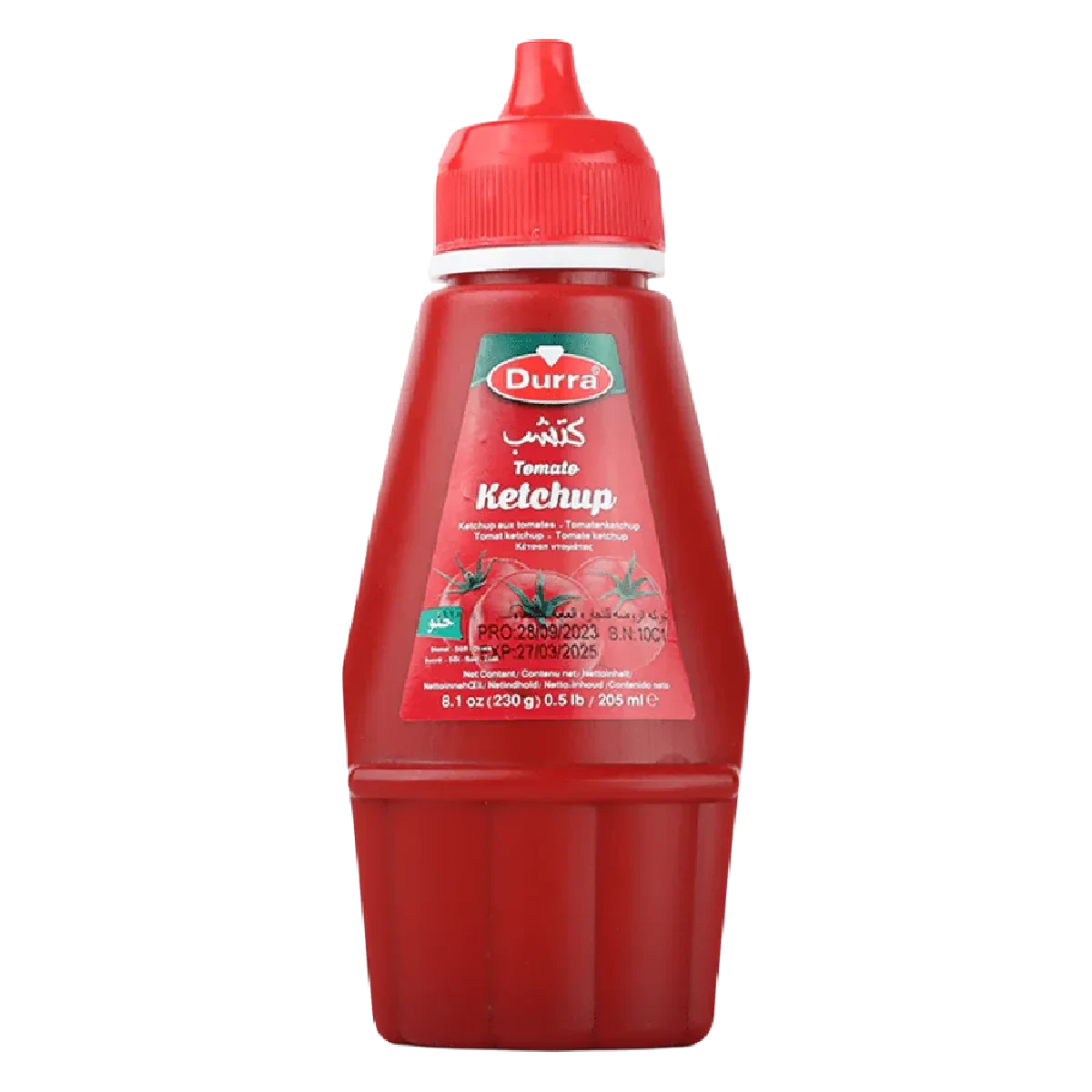كاتشب ذو صلصة حلوة هنية من شركة درة تحلي الطعم وتضفي عليه شكلاً خلاباً خصوصاً ان الكاتشب ذا لون احمر فاقع، حيث أن الكاتشب البارد مصنوع من الطماطم ومن أجود انواع التوابل والبهارات للاستمتاع بمذاق شهي رائع، يضاف الكاتشب البارد الى أطباق المعكرونة والبيتزا، والبطاطا المقلية وغيرها، ويعتبر الكاتشب محبوب الجماهير،يعبأ الكاتشب في عبوة بلاستيكية حمراء محكمة الاغلاق لضمان سلامة المنتج والجودة العالية
