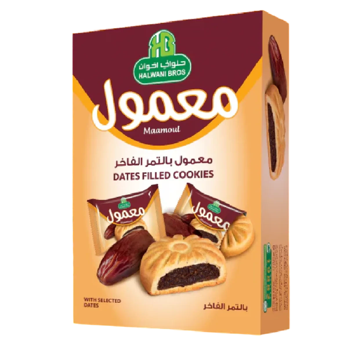 حلواني بروس معمول التمر محشو بمعجون التمر الطري واللذيذ. ما عليك سوى وضع قطعة في فمك ودع نكهتها تقوم بالسحر. اجعل وقت وجبتك الخفيفة وقتًا ممتعًا مع وجبات التمر الخفيفة هذه. وجبة خفيفة مثالية للاستمتاع بها في المدارس أو المكاتب أو في النزهات. ستجعل هذه البسكويت المحشوة بالتمر وقت وجبتك الخفيفة رائعًا. تناولها مع الشاي أو القهوة أو العصائر أو رشها على الحلوى لمنحها نكهة حلوة ومقرمشة. هذه البسكويت الممتعة هي الخيار الوحيد لمحبي البسكويت.
